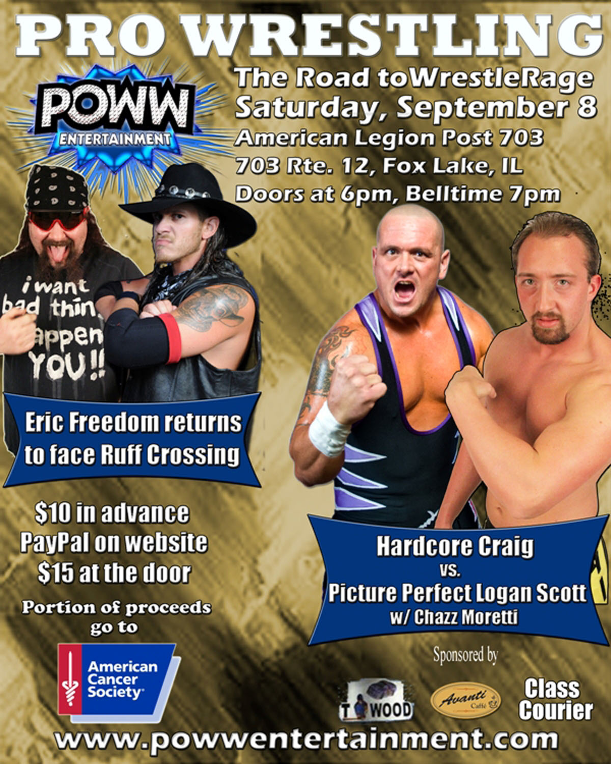 - Joliet, IL -vs- "The Rockstar" Jimmy Rockwell - Sept 8 - POWW -vs- "Picture Perfect" Logan Scott July 04 - Pro Wrestling Blitz